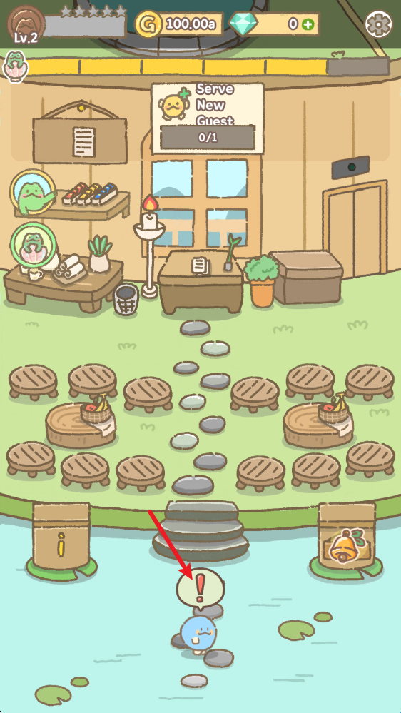 5、如果没有客人了,点击门口的铃铛即可招揽客人,出现客人后记得点击它们,不然它们会直接离开。