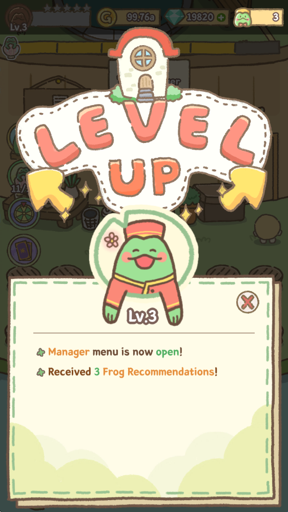 2、从舒适的小木屋到豪华套房,你的青蛙旅馆会随着你的每一个决定而成长,给你最温馨治愈的体验。