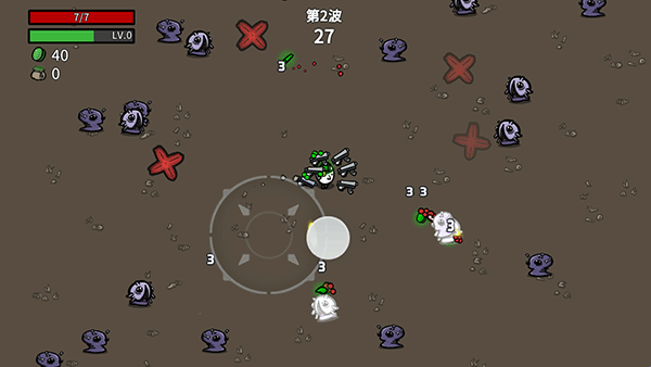 5、土豆人会自动射击,我们只需按住左下角的轮盘滑动来控制移动即可。