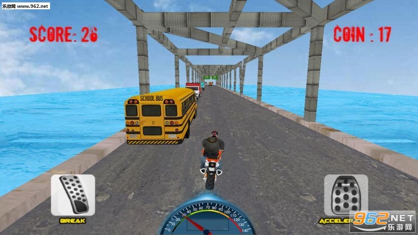 在这个游戏中你可以骑在郊外,森林,隧道,水,桥,城市的摩托车穿梭。