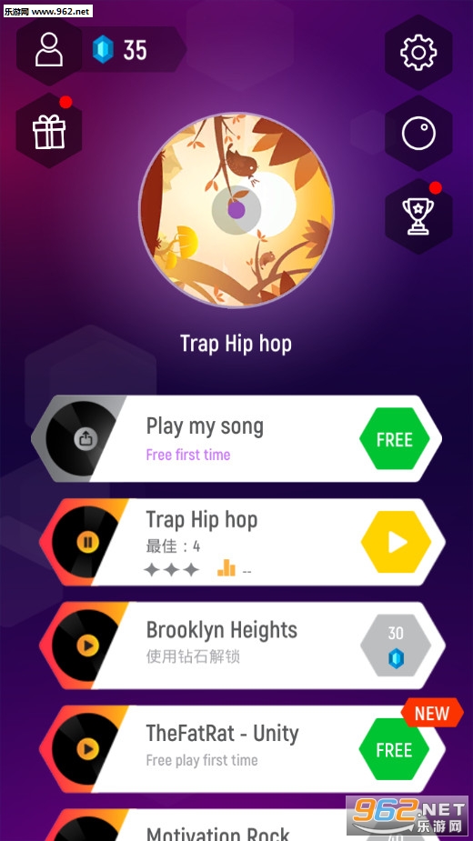 非常不错的音乐节奏跳跃游戏,玩家可以选择各种不同的音乐进行调整,左右移动小球让小球准确的掉落在一个个瓷砖平台上,有着多个背景可以体验,喜欢的朋友可以下载试试。