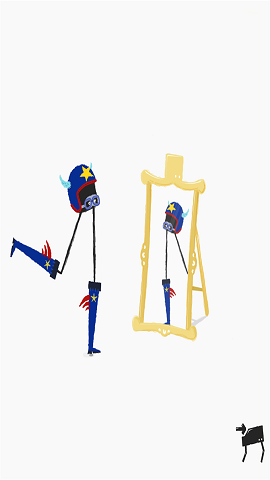 玩家控制那个因为头重脚轻而总是无法保持平衡的小生物向前走,稳稳当当地迈开大长腿。