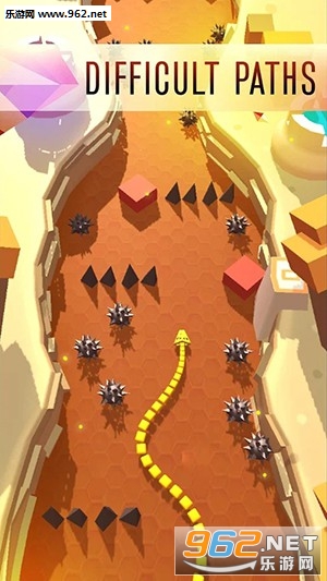 这是一款将贪吃蛇和障碍躲避结合到一起的游戏,操作是挺简单的,但是在你的前方有很多的陷阱和机关,而且它们还非常的坑!我们控制这这条小蛇在峡谷之中前进,峡谷的两边长满的尖刺,前方也有很多的危险,需要在躲避的同时尽可能的多吃点食物,让小蛇变的更长。