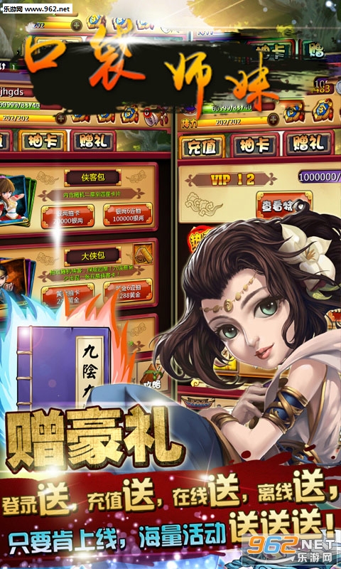 上线赠送VIP6、10000元宝、1000000银币(过完新手后重登在登录活动中领取);