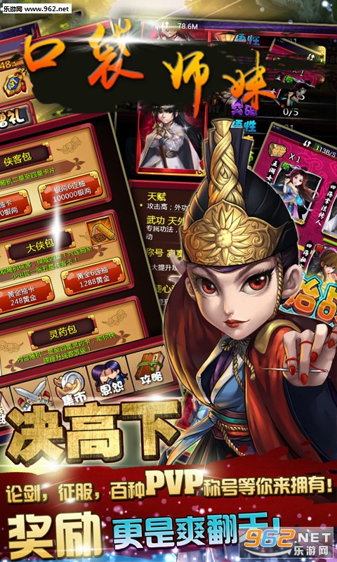 口袋师妹BT变态版是一款类以经典武侠小说为背景改编的Q版日漫风卡牌RPG手游,游戏拥有众多制作精美个性十足的武侠角色卡牌等待玩家的收集,自由组队踏上纷争不断的江湖冒险。