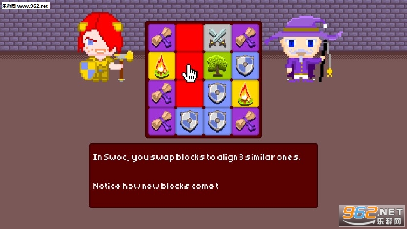 1、玩法传统的像素风三消 RPG 游戏