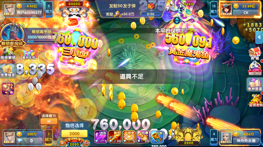 中华丽的弹幕特效,让捕鱼变得更加的刺激。