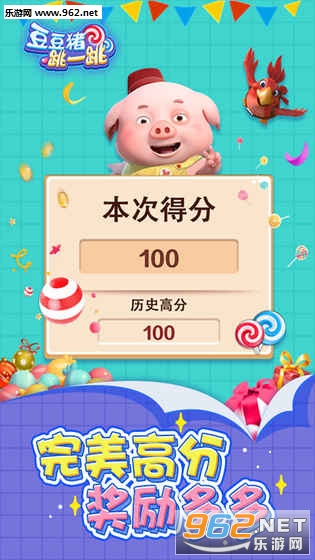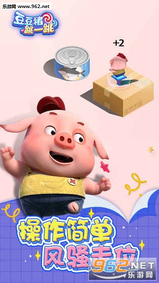 1、游戏玩法简单,只需操纵豆豆猪跳一跳就可以;