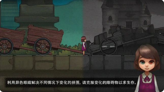 异色眼睛是一款非常受欢迎的解谜类游戏,在这里主要围绕着一位拥有异瞳的小女孩而展开,内置丰富的关卡等你来挑战!你需要根据线索来完成探索任务,在途中会遇到各种障碍,必要时可以借助小女孩异瞳神力帮助你渡过难关!