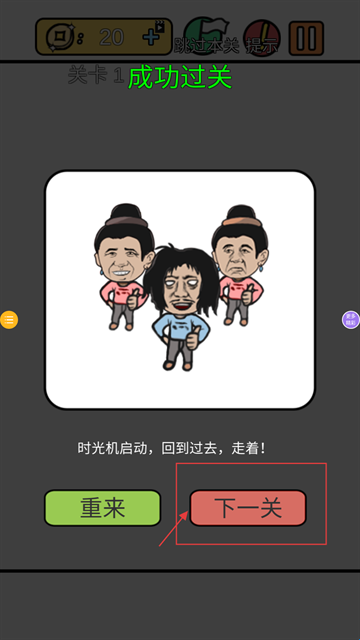 4、过关后点击【下一关】即可继续闯关。