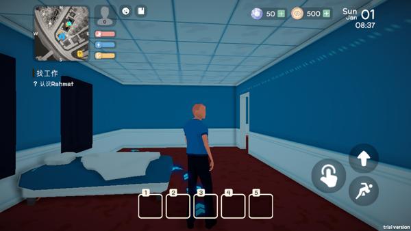3、玩家除了要找工作,还要好好管理好主角的财务,玩家必须做好财务规划以支付房租、购买食物和购买生活必需品。玩家在理财上也要慎重,不可大手大脚。