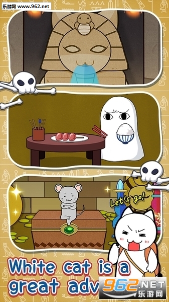 《白猫大冒险埃及篇中文版》是一款十分好玩烧脑的卡通风格冒险解谜类游戏。我们可爱的小白猫这次来到了埃及冒险,但是却不小心的被困在了金字塔里面,你能够帮助小白猫从金字塔里面逃脱出来吗?感兴趣的小伙伴儿赶快来下载吧!
