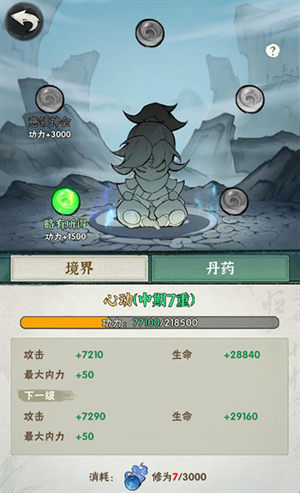 境界系统:获取修为提升境界,除了增加角色基础属性,还可增加内力上限,与武学系统密切关联。