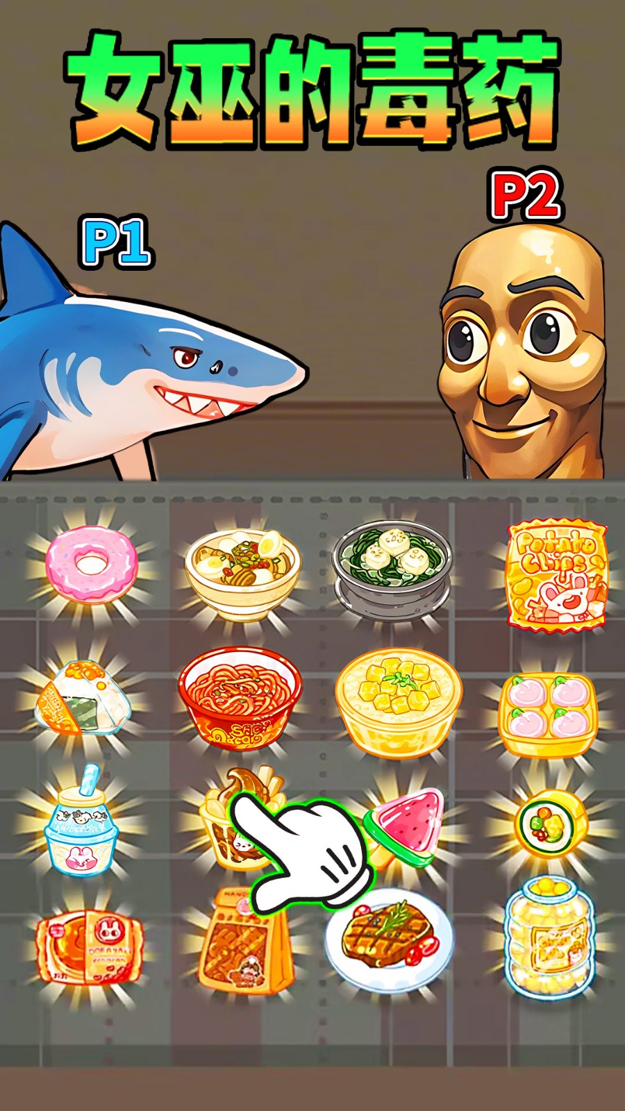 女巫的毒药零食版融入山海经角色,玩家们在这里将和宇宙木棍人、穿aj的小鲨鱼一起完成这次挑战,游戏玩法非常的简单,轮流选择零食,吃到“毒药”的一方会受到惩罚喔!游戏题材新颖,感兴趣的玩家们可以来挑战试试喔!