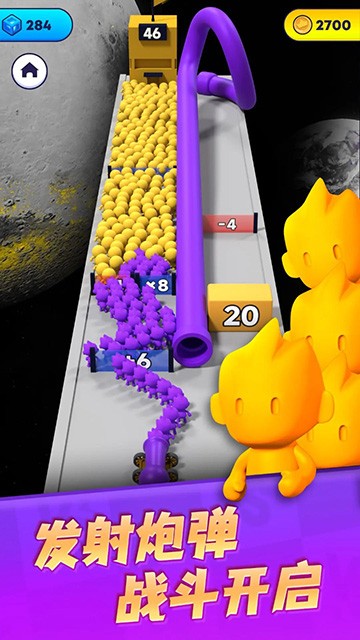 1、有趣的休闲闯关玩法,玩家们在游戏中可以使用颜料大炮来发射颜料人闯关。