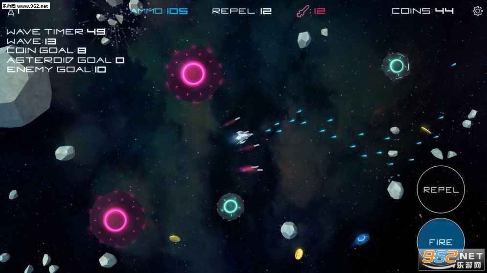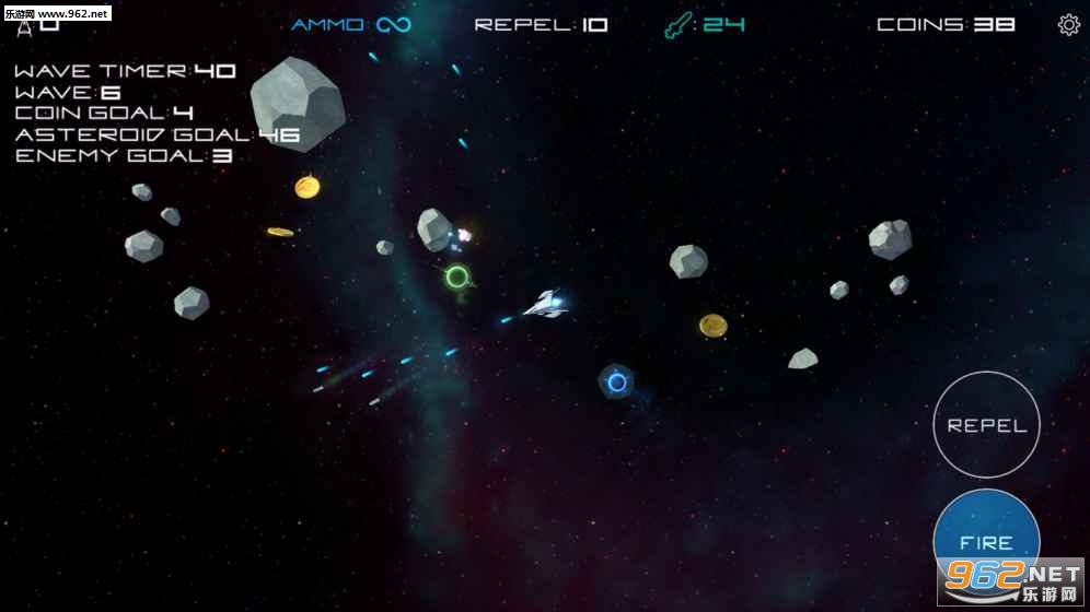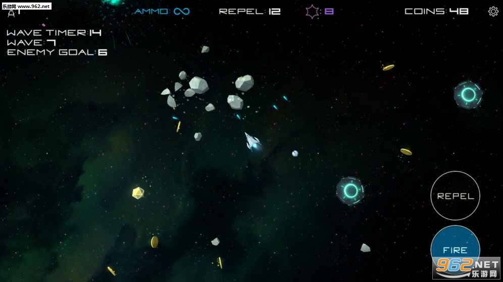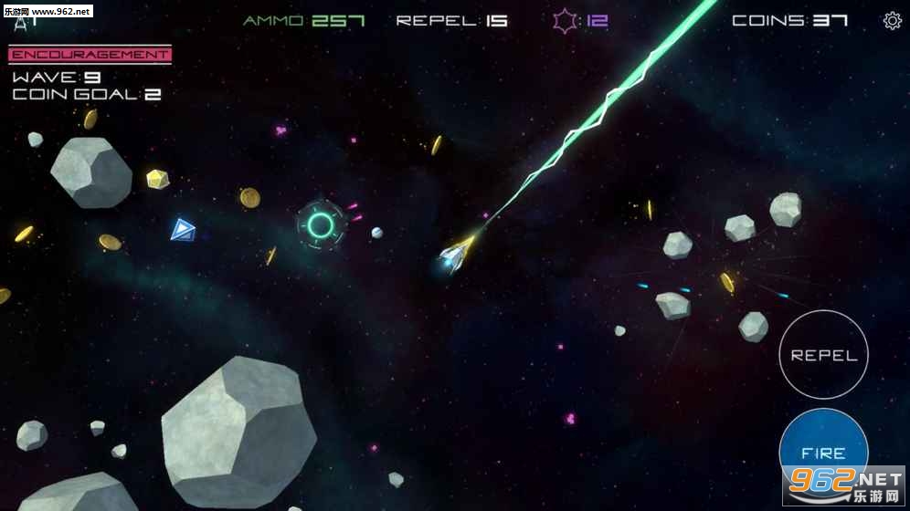 玩家在游戏中要做的就是利用手中的武器消灭掉你周围各种位置的小行星,不要碰到它们,玩起来简单,但是需要反应能力!