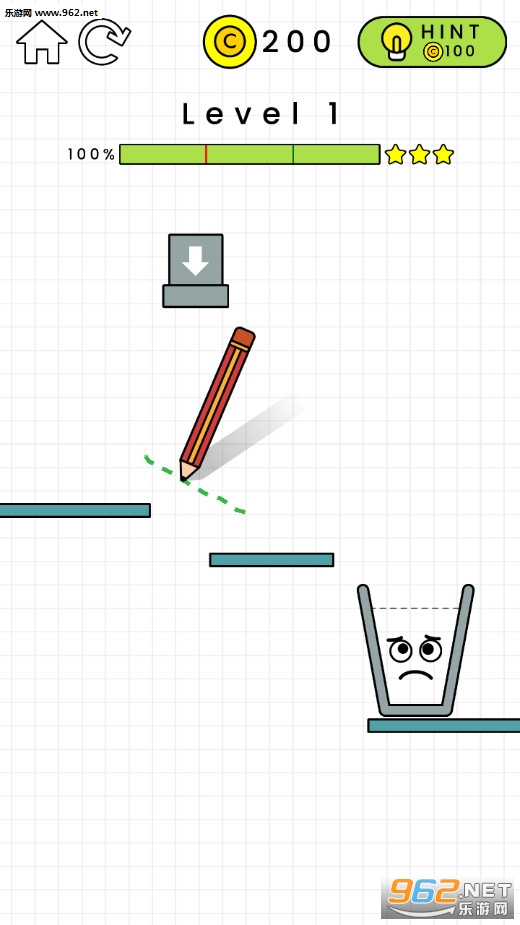 趣味画线游戏,画面简约,看着比较舒适,游戏中玩家的任务就是将水全部引入玻璃杯中,中间会有着各种各样的障碍物,玩家需要画出一条通道让水顺利的流到杯中,喜欢的朋友可以下载试试。