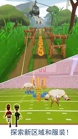 阿甘快跑 Run Forrest Run是一款经典电影改编的跑酷游戏,“生活就像一盒巧克力,你永远不知道下一块是什么”一直是经典的电影名言,今年是《阿甘正传》上映20周年,派拉蒙电影公司推出这款同名电影改变作品“阿甘快跑”予以祝贺。电影中的主角阿甘曾经跑遍全美,因此游戏将自己定位为一款跑酷游戏,十分契合主题。游戏的玩法设计和“跑酷”类似,玩家将扮演《阿甘正传》中的主角阿甘,并上演电影中“Run!Forrest!Run!”的经典情节。玩家需要操作阿甘引导他的路径,从亚拉巴马州乡村启程出发,沿着著名的66号国道向前行进。游戏中阿甘除了会拥有他标志性的发型外,还可以戴上各式的头盔,解锁各种升级和能力。