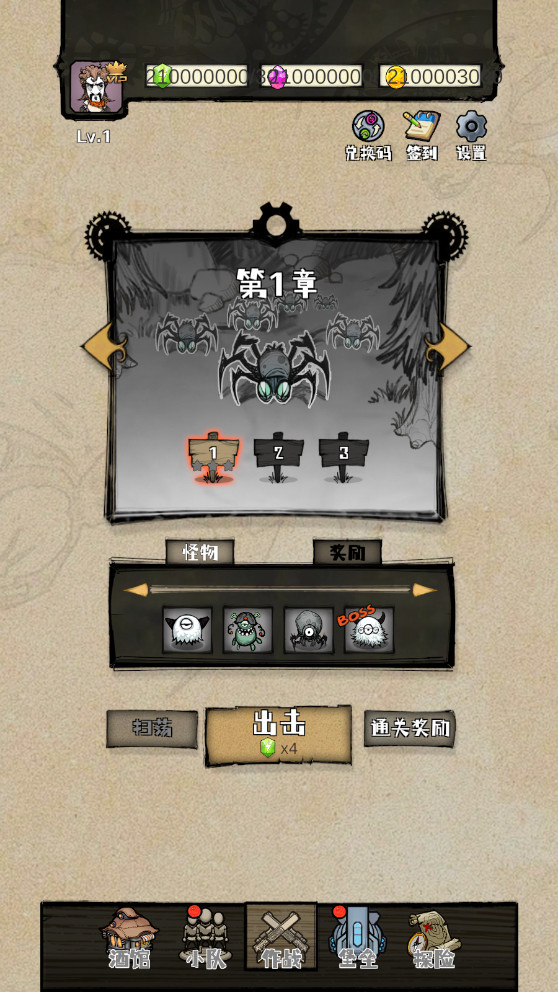 队长带领小队击溃来袭的生物,核心玩法操作简单好上手,用户只需要达到升级条件进行3选1升级技能,恰当时机释放大招。
