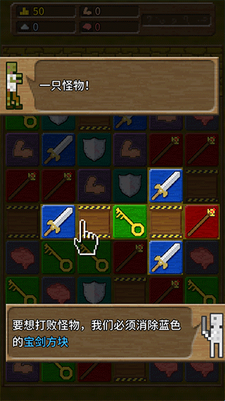 2、想消灭怪物我们必须消除蓝色的宝剑方块