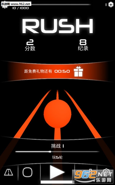 游戏操作简单,界面炫彩,动听的背景音乐,让你体验难以置信的速度,在高速的运动中,Rush游戏中你需需要控制圆球躲避障碍物,从障碍物的空隙中穿梭,准备好展开一场惊心动魄的旅程。