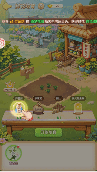 4、可以使用辅助道具进行培育,体验轻松的养成玩法获取更多稀有花卉。