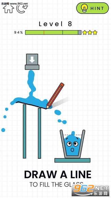2、璃杯子是空的,玩家们要做的很简单,就是画一条线,努力的让杯子充满液体,是不是很有意思。