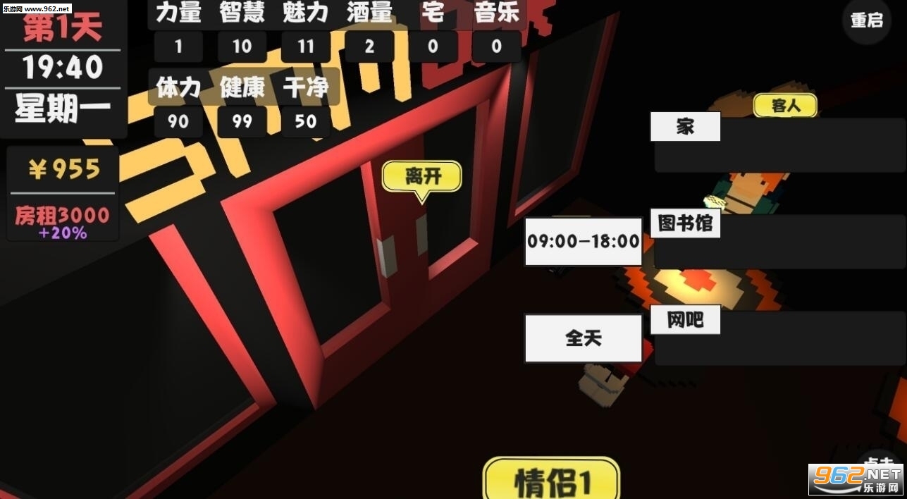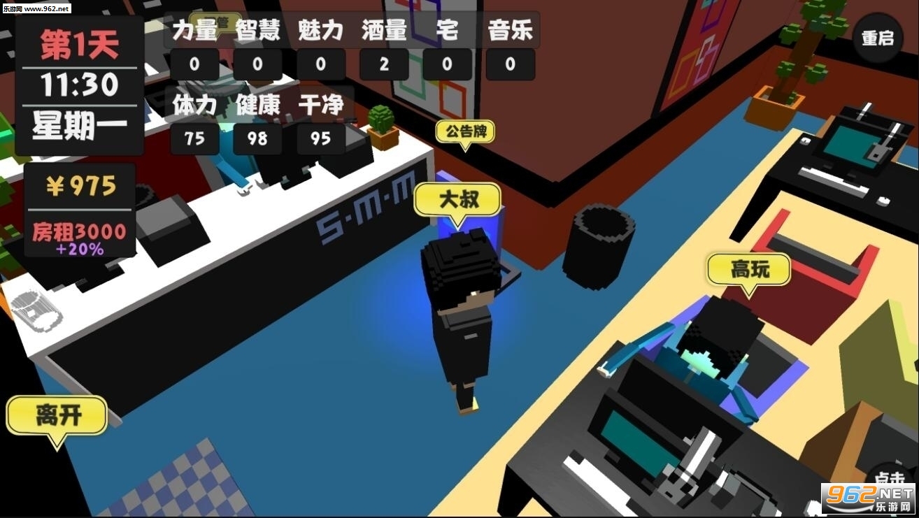 属性生活游戏是一款3D像素风格的模拟策略生存游戏,在游戏中你必须寻找更多的信息来了解游戏的设定,同时根据所获得的信息规划你活下去的道路,游戏的目标是尽可能的活的更久,所以你必须在金钱和身体中找到一个平衡,能活一天是一天,游戏中你可以去的地方非常多,不过还是请慎重选择。