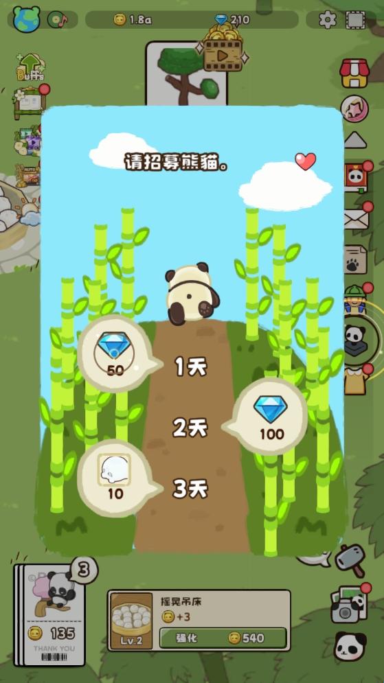 3、情感连接元素:从幼崽养育到成年熊猫互动解锁多样行为故事,每一次照料都能加深情感纽带增强投入度。