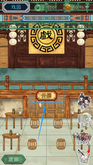 3、建造装饰之后可迎接顾客,安排上戏码,顾客听完后给出游戏币奖励。