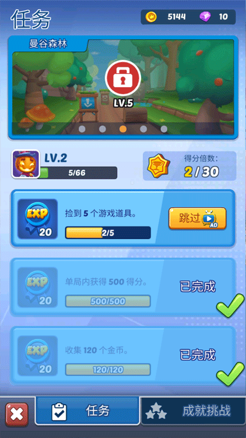 6、当你收集到足够多的金币、角色、任务等就可以解锁更多的成就以及获得更多的砖石和经验。