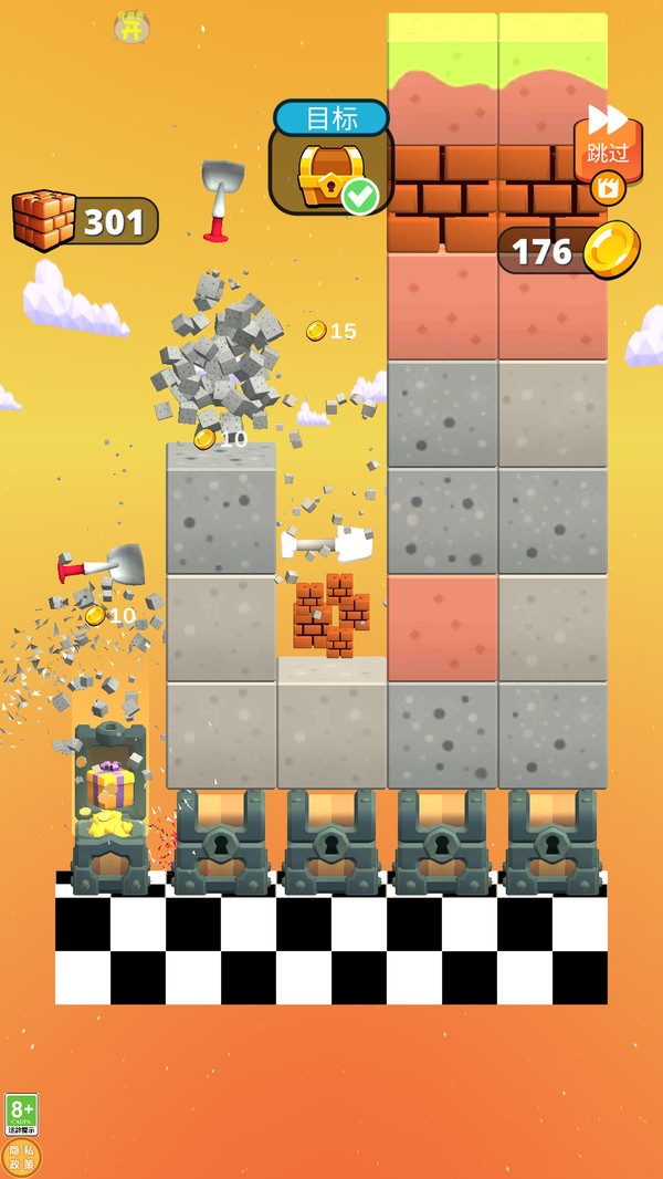 矿工生涯游戏主要是以挖矿为主题,在这里玩家们作为一名专业的挖矿人员,根据游戏提示完成任务,非常考验玩家们的动手能力,选择合适的位置,同时借助道具避免矿洞坍塌喔!尽可能挖掘更多有效资源,到后期,你可以升级铲子,解锁更深处!游戏好玩有趣,感兴趣的玩家们快来下载体验吧!