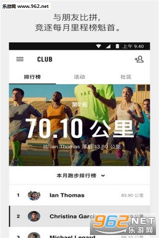 最激励人心的事莫过于跟朋友一较高下。 与你的朋友们争夺排行榜的冠军宝座,在 Nike+ 挑战中正面对决。 只要设置距离即可。 邀请你的朋友。 奔向终点。