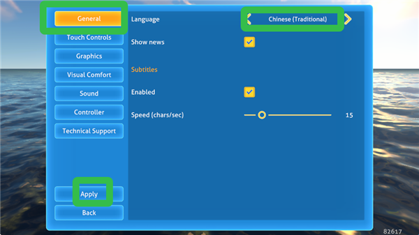 2、在【General】一栏切换语言至Chinese(Traditional),然后点击【Apply】。