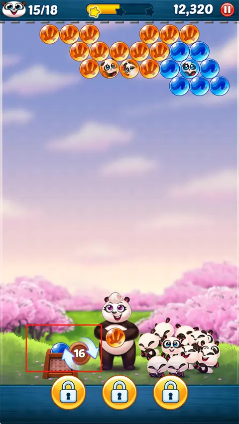 4、游戏过程中还会有一些包含了特殊效果的珠子,如果打中它们,将会帮你更加效率的完成关卡,拯救所有的小熊猫即可闯关成功!