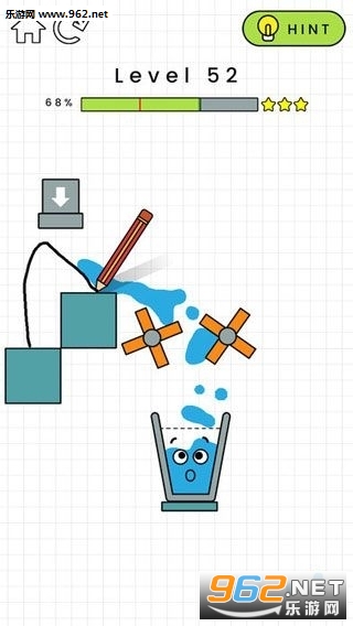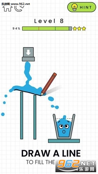 2、在杯子上有着几道虚线,进入杯子中的水到达一天虚线会获得一颗星星,三星为完美通关哦;