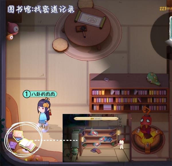 <1>找密道记录。点击:三本发光的书籍——任务即可完成。