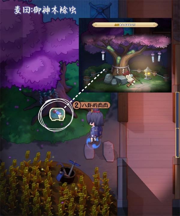 <2>御神木除虫。点击树上三只毛毛虫算为成功。