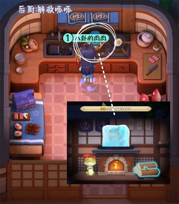 <1>解救呱呱。把三推木头移动到火推——让被冻住在冰块的青蛙解救出来——任务即可完成。