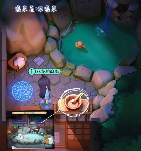<1>泡温泉。点击桌子上的洗脸盆——进入任务以后不停点击洗脸盆完成。