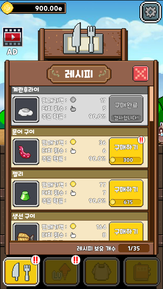 3、收集金币来学习新食谱,提升你的技能!