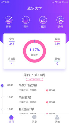 上课签到提醒,审批结果通知,调课通知,校园公告都通过消息下发提醒,不会错过任何一个重要信息。