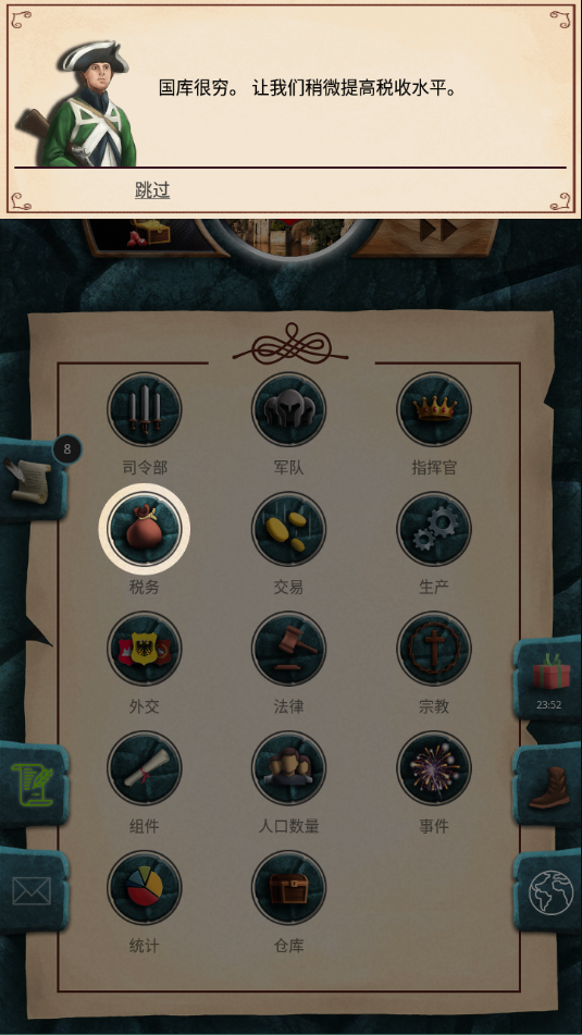 1、建立军队和海军,将自己的国家军队发展的更加的强力,获得足够多的军事实力。