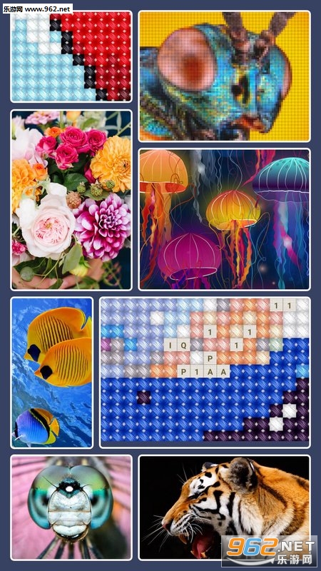 简单而轻松的游戏,数百个美丽的照片和图案,选择颜色并点击放置针,即可完成独特的十字绣作品。