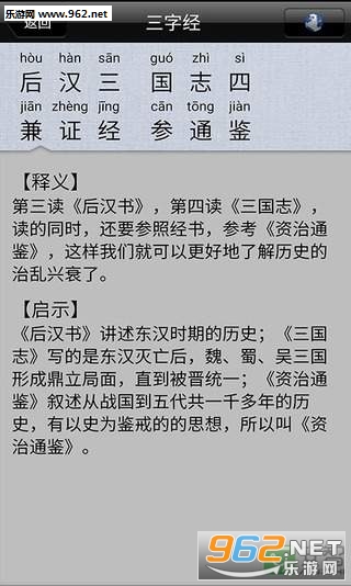 非常有趣的幼儿教育了应用软件,有全文版的三字经,带拼音,可以朗读,还有详细的释义解析,是非常棒的开蒙读物。
