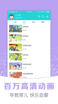 拥有丰富的资源,包括故事、绘本动画等多种形式,还能让宝宝进行英语方面的启蒙,听到看到更多有趣的故事,给孩子带来最好的陪伴。