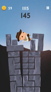游戏中玩家需要寻找合适的地方进行点击操作,合理的进行粉碎某一处的石块,让小男孩在高塔上可以安稳的进行下落。大量奇妙制作的游戏关卡,每关卡中的堆叠成高塔的石块排列不一样,玩家需要通过不同的技巧能力粉碎石块。