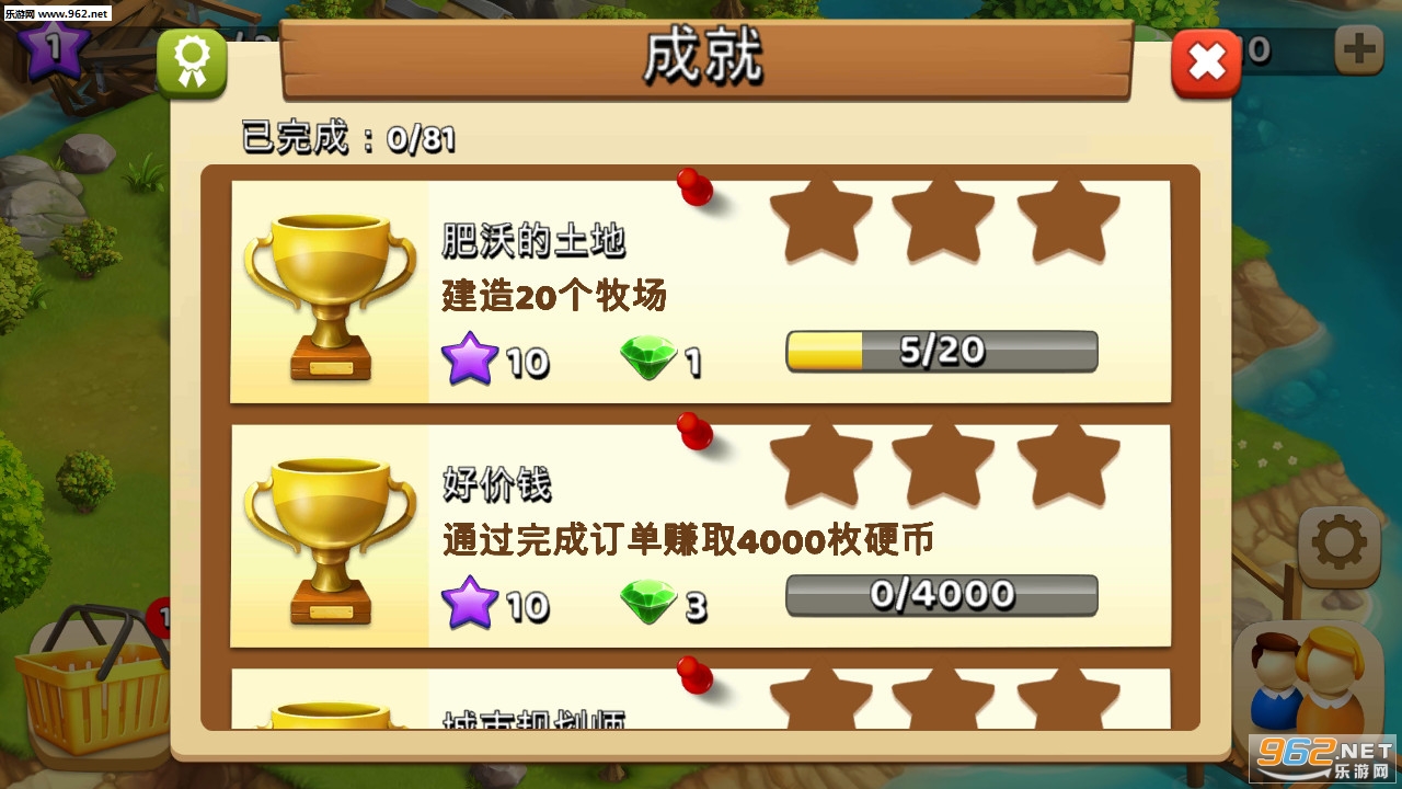 非常不错的经营游戏,玩家将在这里一点点的打造自己的房屋田地,可以将自己收获的一些东西与其他人进行赚取一定的金钱,喜欢的朋友可以下载试试。