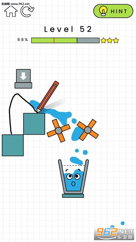 看似简单的划线却也考验着玩家的脑力,考虑物理效果并绘制出一条可以牵引水流走向的线条让水杯可以装满水。