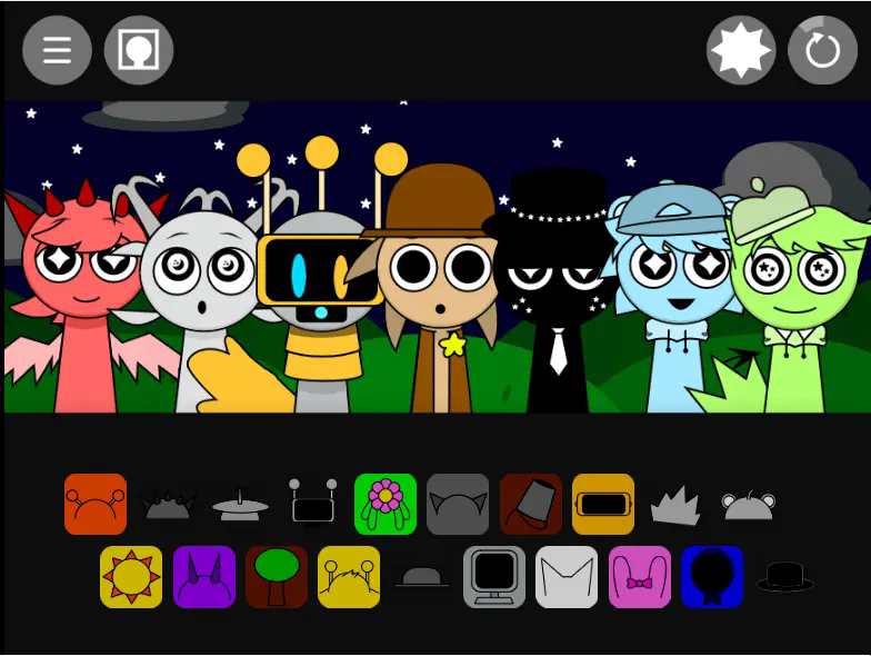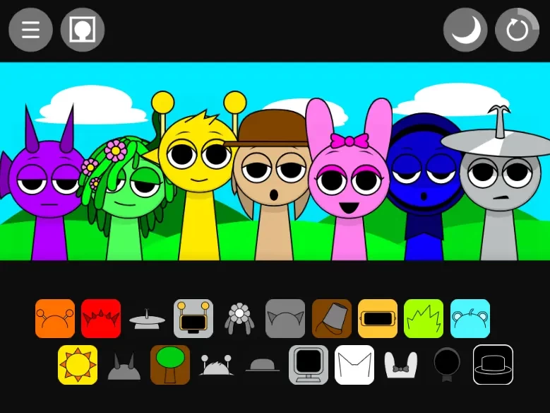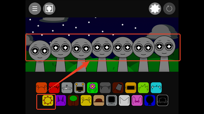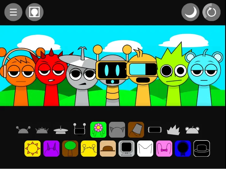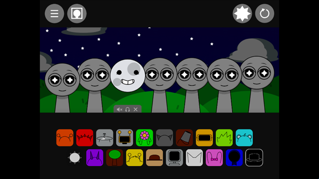 2、节奏盒子Sprunki黑夜模式拖动下面的方块到角色上,他们就会自己演奏。